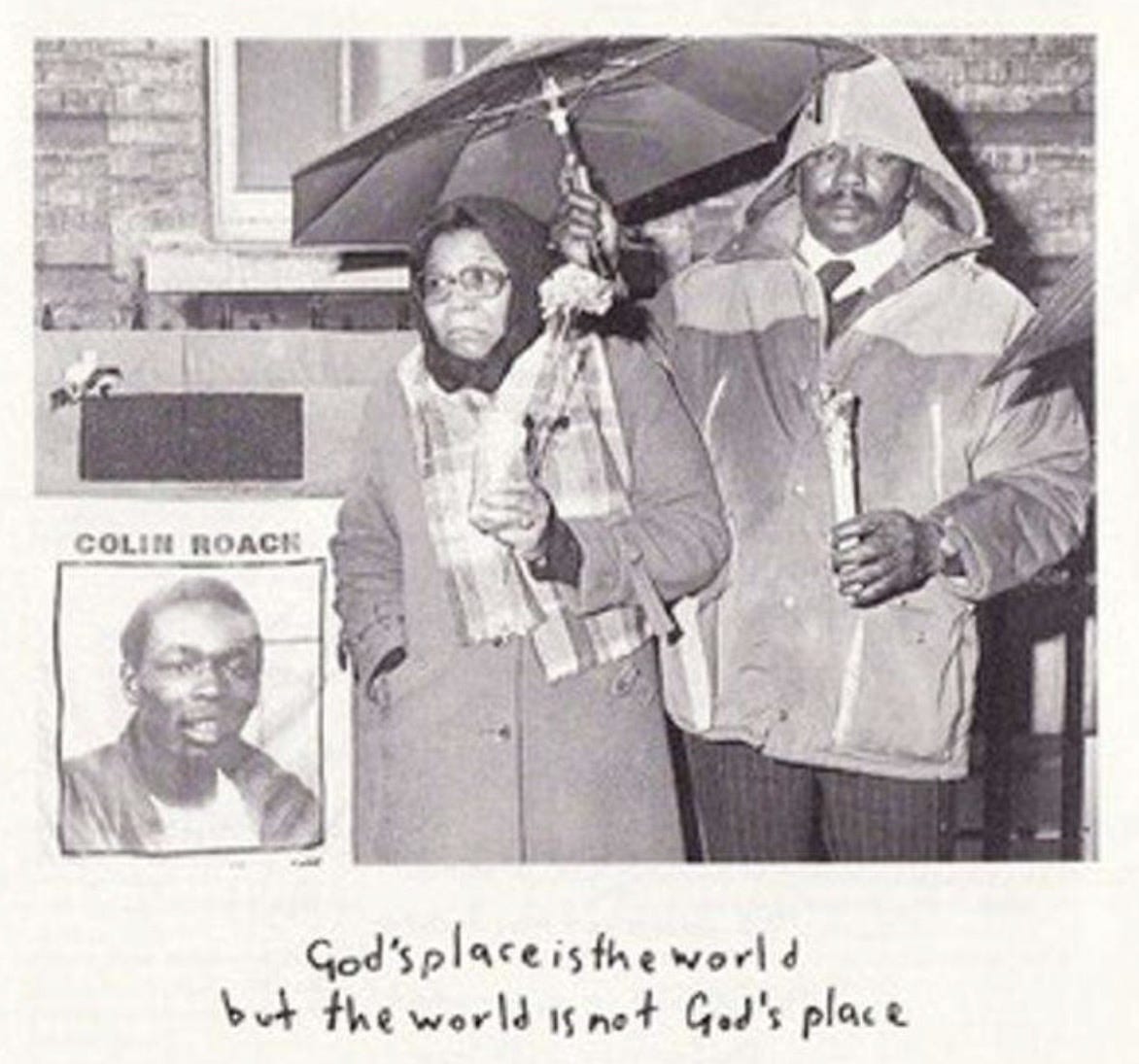Colin Roach was a 21-year-old Black man living in Hackney, East London. One night in 1983, while riding his scooter home, he was stopped by police who, after observing him, confidently decided the scooter must be stolen. Some time later, Colin lay dying from a gunshot wound inside the foyer of the local police station. Police immediately claimed he had shot himself.