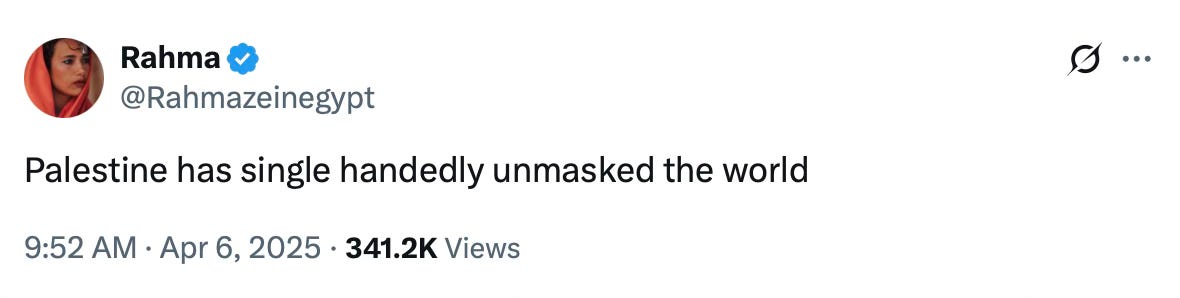 The United States has spent decades claiming to be the global champion of freedom, democracy, and human rights. Yet today we are witnesses to history’s first live-streamed genocide, carried out with U.S. weapons, funded with U.S. dollars, and defended with U.S. propaganda. The United States is a country that is actively supporting genocide. This is the most important fact to know about the world right now. It is being shown to us in plain sight every day.