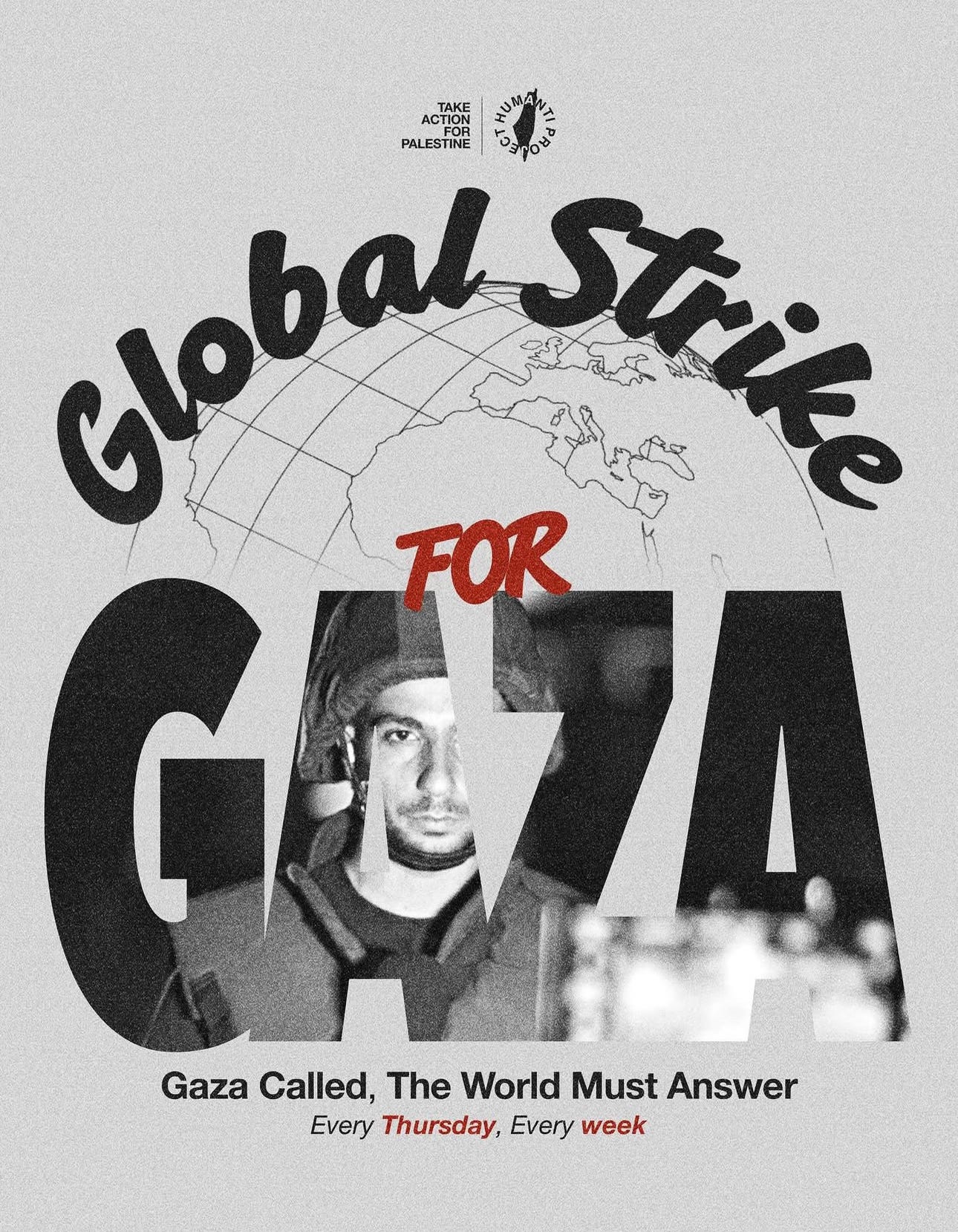 To learn more, listen to the call from Palestinian journalist Biswan Owda and visit @globalstrikegaza for details.